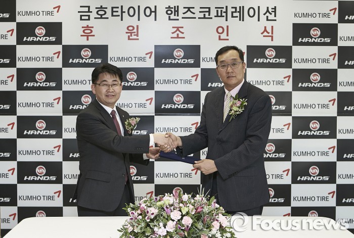 (서울=포커스뉴스) 금호타이어는 서울 종로구에 위치한 금호아시아나본관에서 자동차 휠 전문 제조업체 '핸즈 코퍼레이션'과 '핸즈 모터스포츠 페스티벌 2016' 후원에 대한 파트너십을 체결했다고 6일 밝혔다.