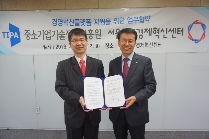 (서울=포커스뉴스) 중소기업기술정보진흥원(이하 중기기술정보진흥원)과 서울창조경제혁신센터(이하 서울창조센터)는 6일 서울 광화문 서울창조센터에서 경영혁신플랫폼 지원을 위한 업무협약(MOU)을 체결했다.