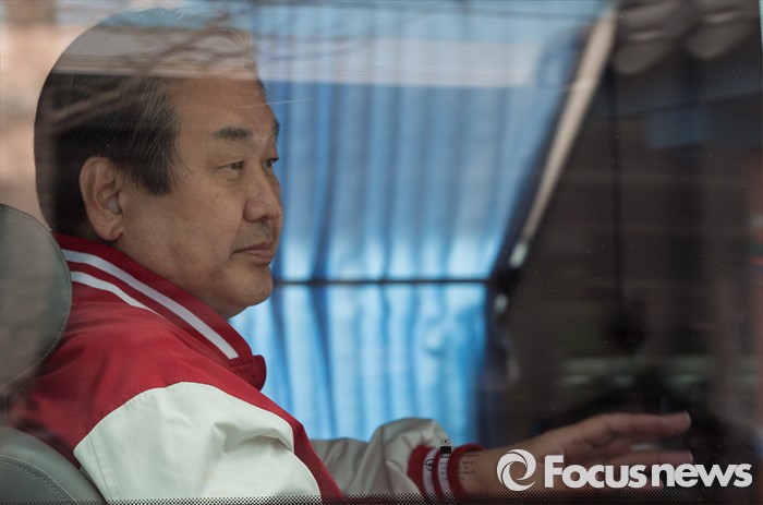 (아산=포커스뉴스) 6일 오후 충남 아산 충무로에서 이명수 새누리당 아산시갑 후보 지원유세에 나선 김무성 대표가 지지연설을 마친 후 버스에 탑승하고 있다.