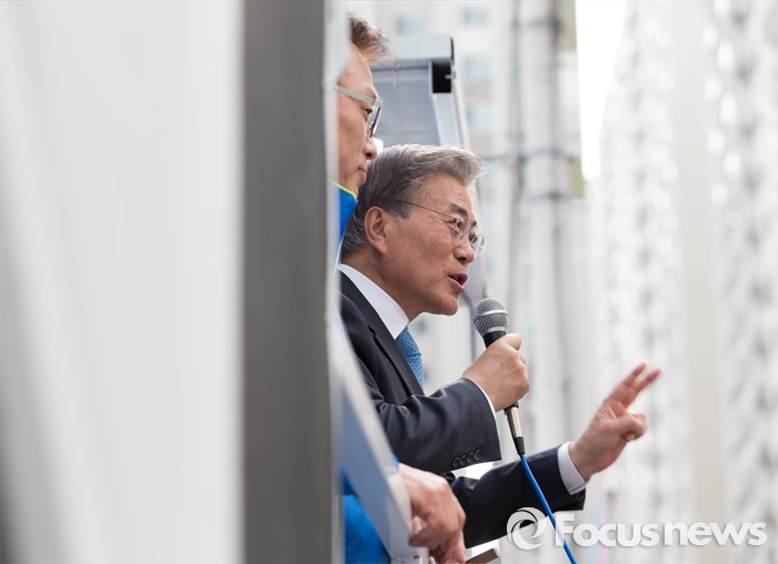 (수원=포커스뉴스) 6일 오후 경기 수원시 영통구 매탄1동 주민센터 앞에서 문재인 더불어민주당 전 대표가 박광온 더민주 수원시정 후보 지원유세를 하고 있다.