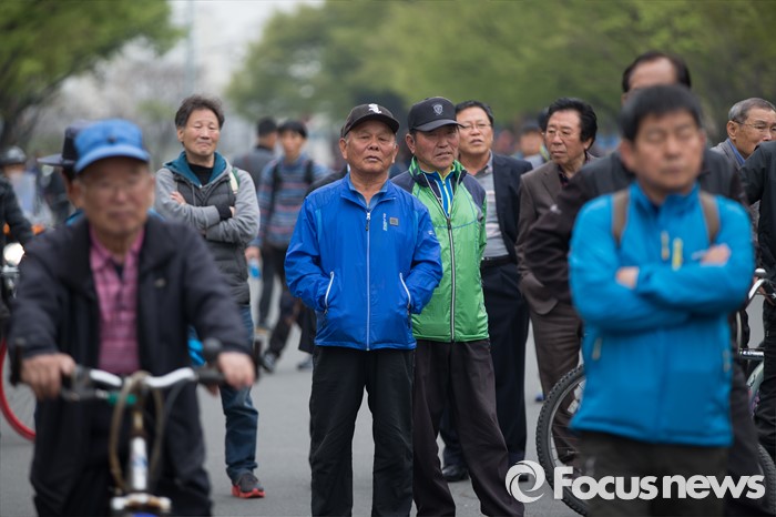 (대구=포커스뉴스) 유권자들이 6일 오후 대구광역시 달서구 성당동 일대에서 열린 대구지역 후보자 총집결 거리유세에서 선거유세를 바라보고 있다.