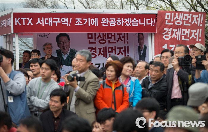 (대구=포커스뉴스) 유권자들이 6일 오후 대구광역시 달서구 성당동 일대에서 열린 대구지역 후보자 총집결 거리유세에서 선거유세를 바라보고 있다.