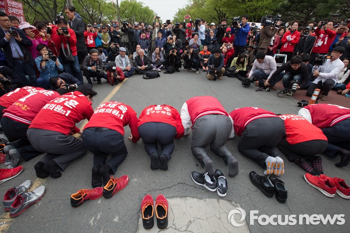 | △ '새누리당 대구지역 후보자 총집결' 사죄하는 후보자들 |