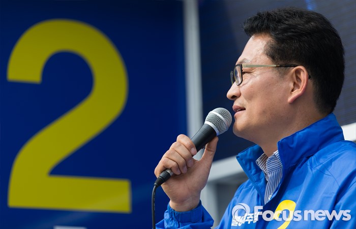 (인천=포커스뉴스) 제20대 총선에 출마한 송영길 더불어민주당 계양을 후보가 6일 오후 인천 계양구 계산역 앞에서 선거운동을 하고 있다.