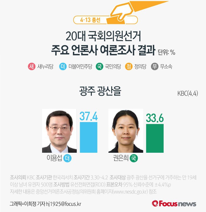 (서울=포커스뉴스) KBC가 한국리서치에 의뢰해 4일 발표한 광주 광산을 여론조사 결과에 따르면