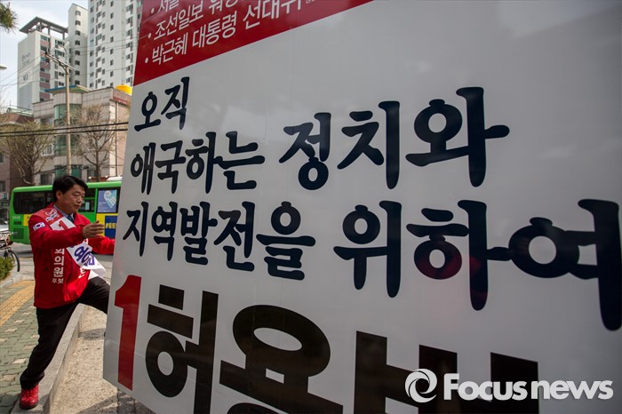 (서울=포커스뉴스) 허용범 새누리당 동대문구갑 후보가 6일 오후 서울 동대문구 제기동 일대에서 선거운동을 하기 위해 유세차량에 오르고 있다.