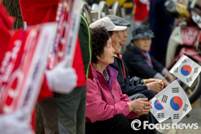| △ 태극기 손에든 동대문갑 유권자들 |