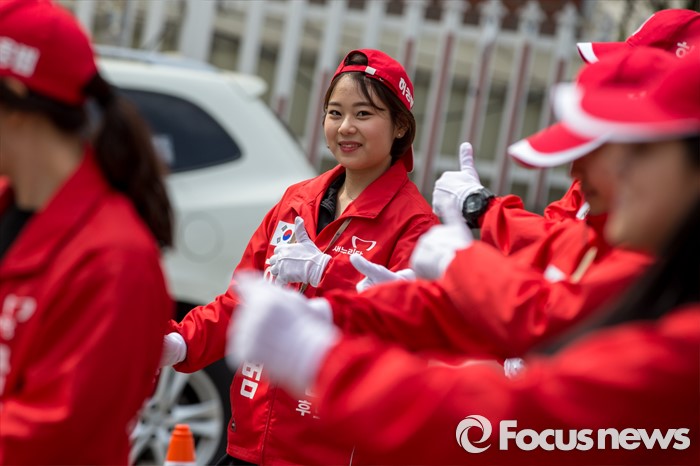 (서울=포커스뉴스) 6일 오후 서울 동대문구 제기동 일대에서 허용범 새누리당 동대문구갑 후보 선거운동원들이 노래에 맞춰 춤을 추며 선거운동을 하고 있다.