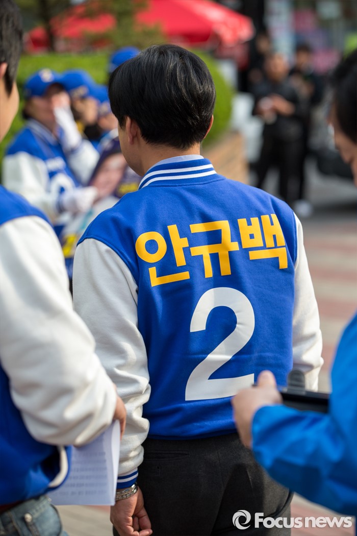 (서울=포커스뉴스) 안규백 더불어민주당 동대문구갑 후보가 6일 오후 서울 동대문구 휘경동 일대에서 유세에 앞서 유권자들에게 인사 하고 있다.