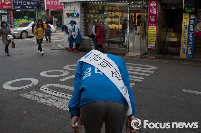 | △ 90도로 인사하는 금태섭 후보 |