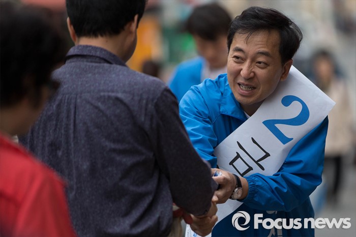 (서울=포커스뉴스) 20대 총선을 일주일 앞둔 6일 오후 서울 강서구 화곡8동 주민센터 일대에서 금태섭 더불어민주당 강서구갑 후보가 거리유세를 하고 있다.