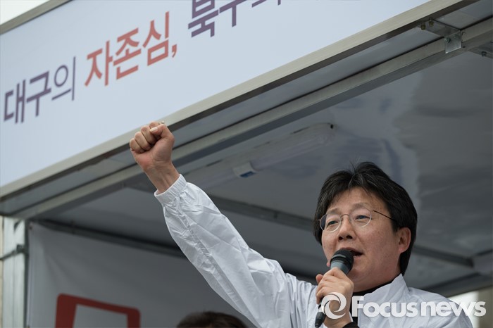 (대구=포커스뉴스) 유승민 무소속 동구을 후보가 6일 오후 대구광역시 북구 칠성시장 앞에서 권은희, 류성걸 무소속 후보와 함께 선거 유세를 하고 있다.