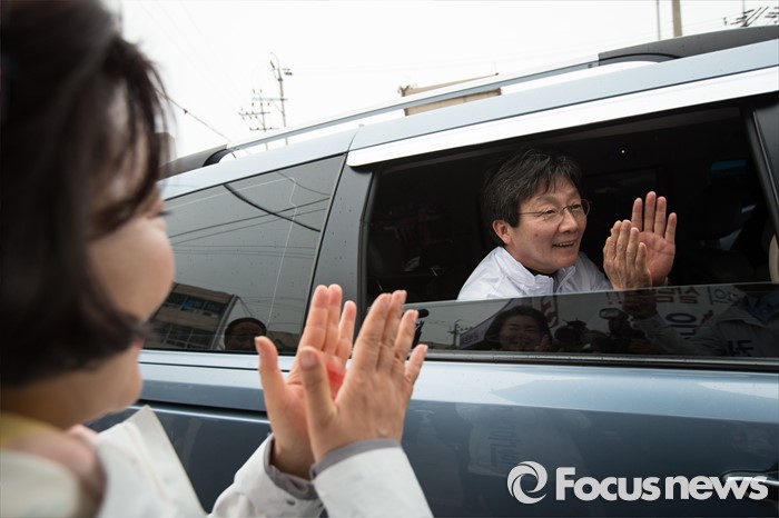| △ 지지자들에게 인사하며 떠나는 유승민 |