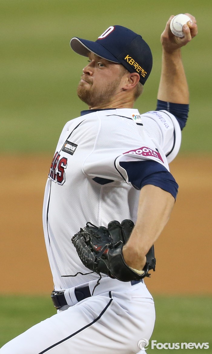 (서울=포커스뉴스) 6일 서울 잠실구장에서 열린 2016 프로야구 NC-두산 경기에서 1회초 두산 선발투수 보우덴이 투구하고 있다.