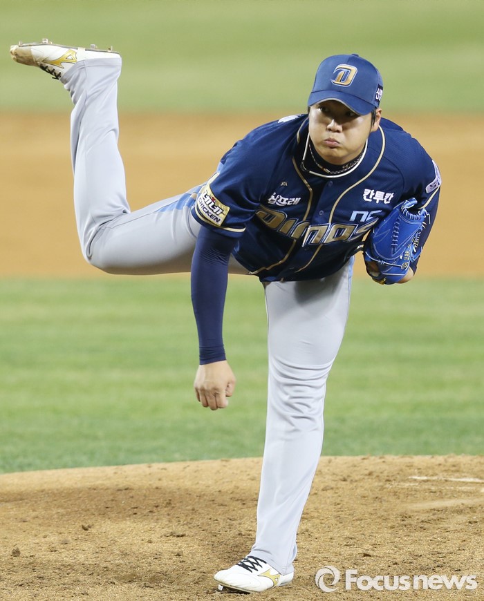 (서울=포커스뉴스) 6일 서울 잠실구장에서 열린 2016 프로야구 NC-두산 경기에서 1회말 NC 선발투수 이민호가 투구하고 있다.