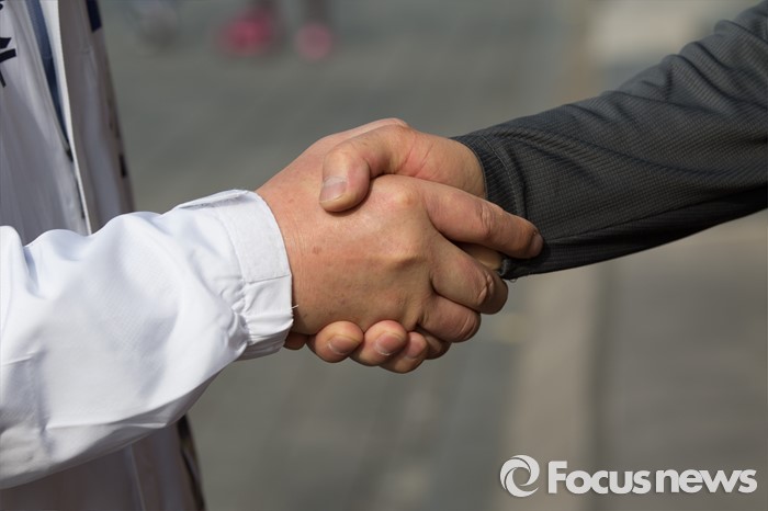 유권자와 악수하는 신경민 후보