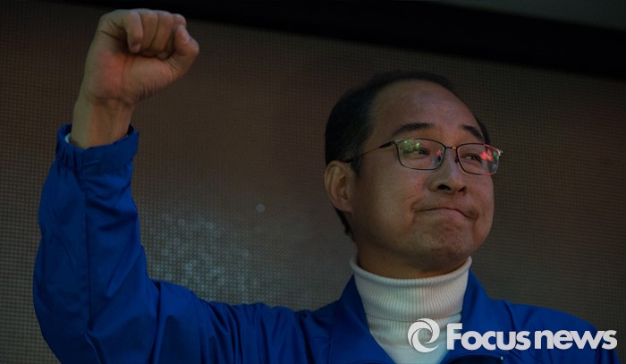 | △ 이성만 후보 '주먹 불끈' |