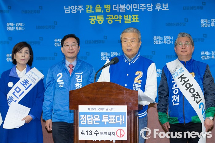 (남양주=포커스뉴스) 7일 오전 경기도 남양주시청에서 공동정책 공약 발표에 앞서 김종인 더불어민주당 비대위 대표가 인사말을 하고 있다.
