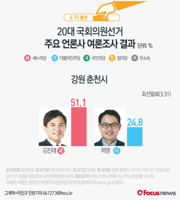 | △ [그래픽] 4.13총선 강원 춘천 여론조사결과 |
