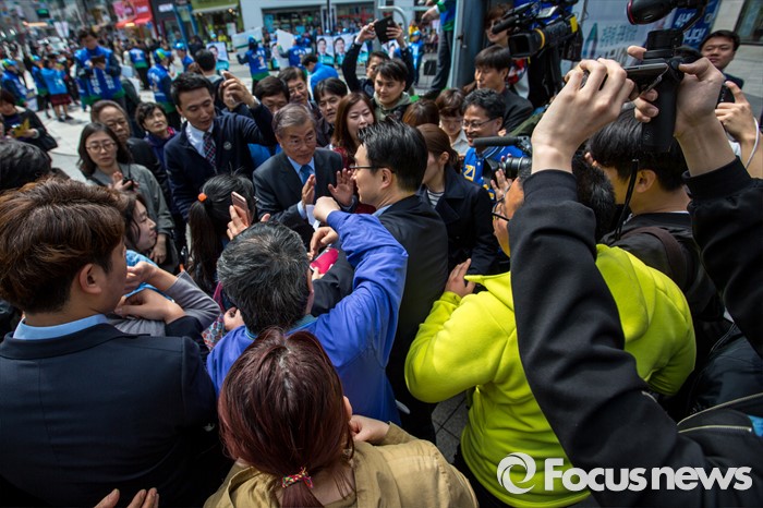| △ 유권자들에게 둘러 싸인 문재인 전 대표 |