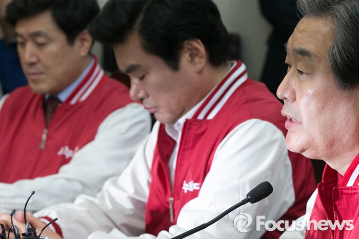 (서울=포커스뉴스) 김무성(오른쪽) 새누리당 대표가 7일 오전 서울 여의도 당사에서 열린 공동선대위원장 긴급회의에 참석해, 모두발언하고 있다.