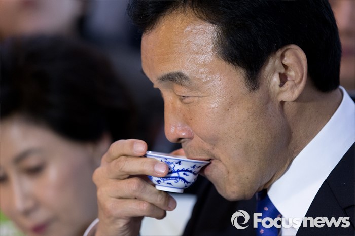 (남양주=포커스뉴스) 7일 오전 경기 남양주 다산유적지 실학박물관에서 손학규 전 더불어민주당 상임고문이 '다산 정약용에게 배우는 오늘의 지혜'라는 주제로 특별강연을 마치고 차를 마시고 있다.