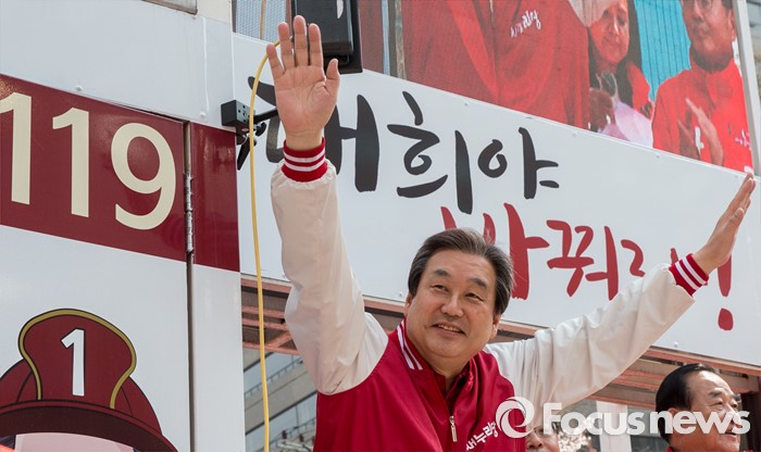 (서울=포커스뉴스) 7일 오후 서울 마포구 늘장공원에서 열린 안대희 새누리당 마포갑 후보 집중유세에 참석한 김무성 대표가 유권자들의 지지를 호소하고 있다.