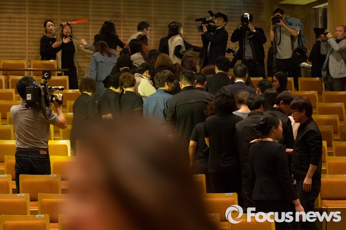 (서울=포커스뉴스) 7일 오후 서울 서초구 예술의전당 음악당에서 열린 유관 기관 합동 대테러훈련에서 직원들이 관객들을 대피시키고 있다. 이번 훈련은 공연 도중 폭발 의심물체가 발견된 상황을 설정해 훈련을 진행했다.