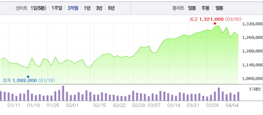이어 김 연구원은 “비수기의 실적 개선은 반가운 소식”이라면서 “3월 31일 149만원에서 153만원으로 상향 조정한 목표주가를 유지한다”고 덧붙였다.