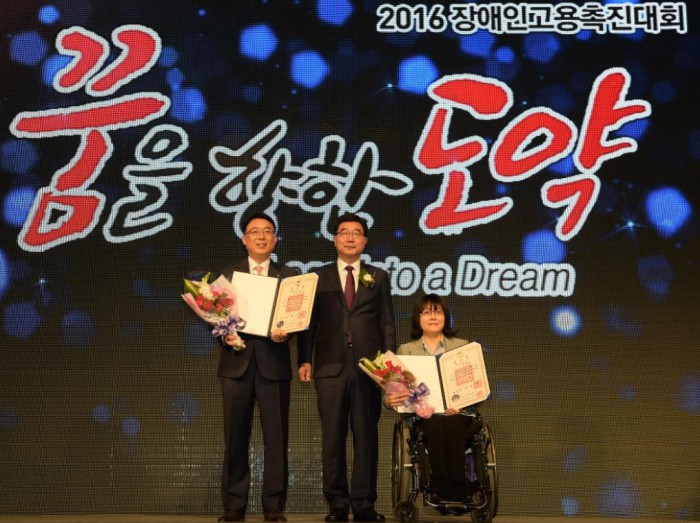 (서울=포커스뉴스) 한화호텔앤드리조트 호텔부문이 업계 최초로 장애인고용촉진유공자 철탑산업훈장을 수상했다. 6일 서울 서초 더케이 서울호텔에서 열린 '2016 장애인고용촉진대회'에서다. 철탑산업훈장은 '장애인고용촉진대회'의 최고권위상이다.
