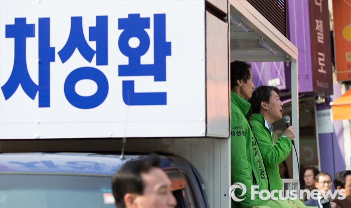 (서울=포커스뉴스) 7일 오후 서울 송파구 마천시장에서 안철수 국민의당 상임공동대표가 차성환 국민의당 송파구병 후보 지원유세를 하고 있다.