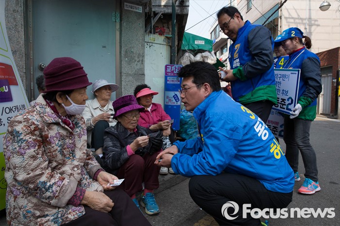 (서울=포커스뉴스) 20대 총선을 6일 앞둔 7일 오후 서울 동작구 남성역 골목시장에서 허동준 더불어민주당 동작구을 후보가 선거운동을 하고 있다.