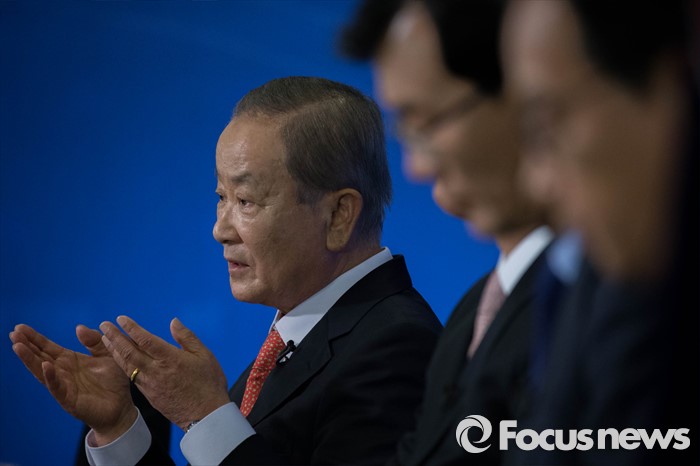 (서울=포커스뉴스) 7일 오후 서울 종로구 세종문화회관에서 열린 한국방송기자클럽 초청토론회에 참석한 강봉균 새누리당 공동선거대책위원장이 패널들과 토론을 하고 있다.
