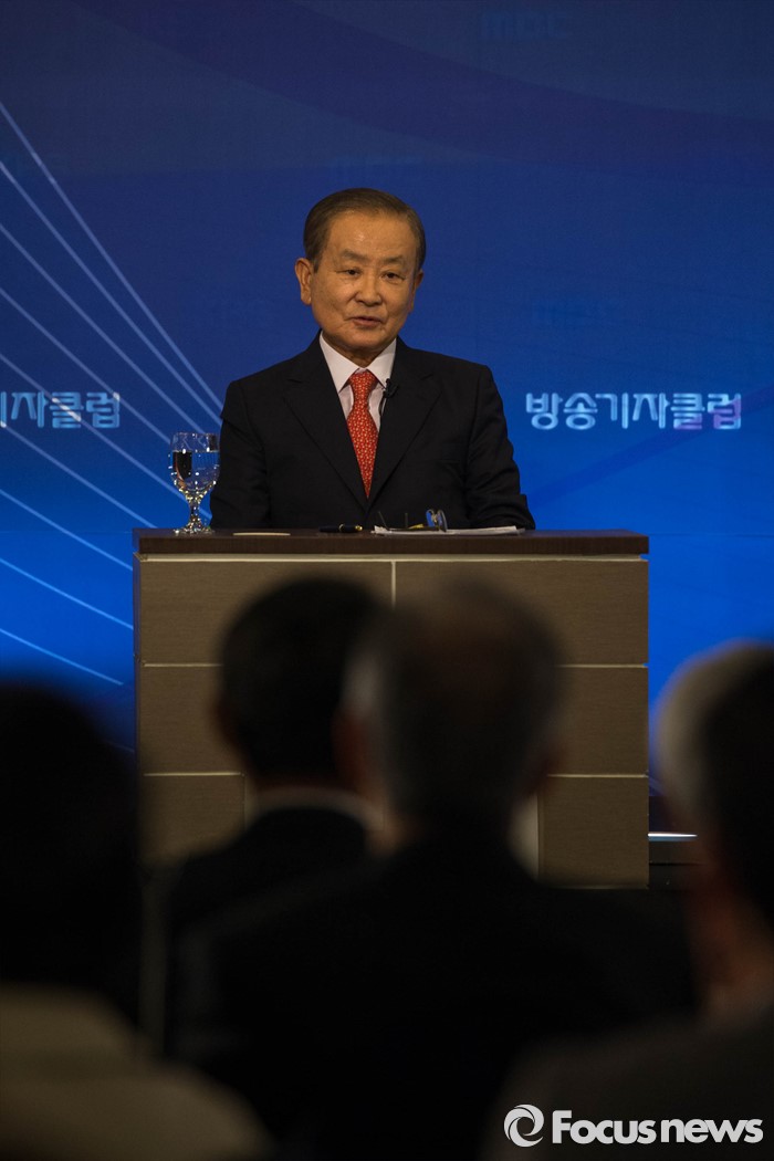 (서울=포커스뉴스) 7일 오후 서울 종로구 세종문화회관에서 열린 한국방송기자클럽 초청토론회에 참석한 강봉균 새누리당 공동선거대책위원장이 패널들과 토론을 하고 있다.
