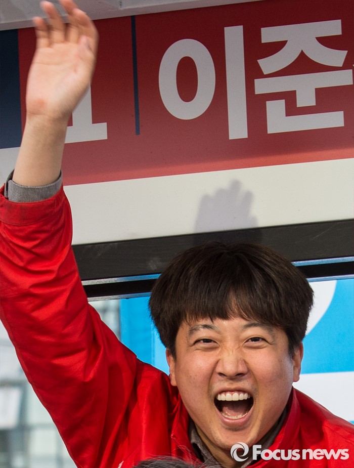 (서울=포커스뉴스) 7일 오후 서울 노원구 롯데백화점 인근에서 이준석 새누리당 노원구병 후보 지원유세에서 이 후보가 환하게 웃고 있다.