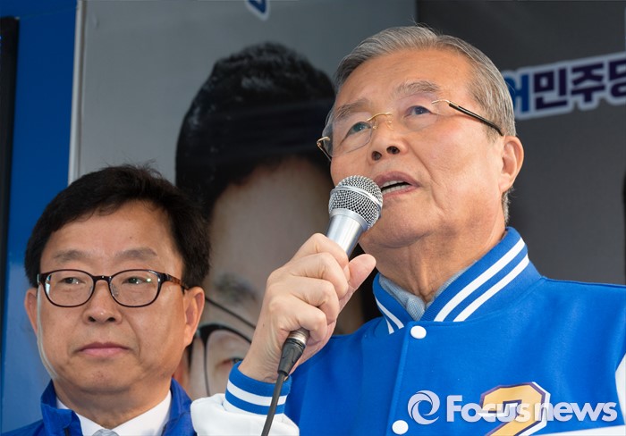 (충주=포커스뉴스) 김종민 더불어민주당 대표가 7일 오후 충북 충주 중앙로에서 윤홍락 후보의 지지를 호소하고 있다.