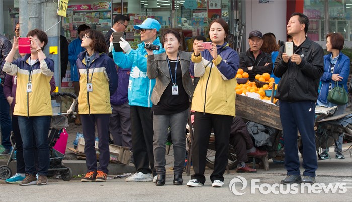 (충주=포커스뉴스) 7일 오후 충북 충주 중앙로에서 선거관리위원회 직원들이 핸드폰과 캠코더로 촬영을 하고 있다.