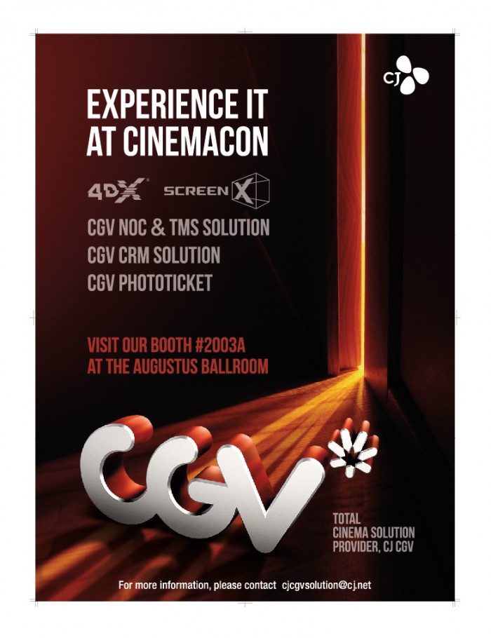 CJ CGV는 올해 시네마콘에서 '토탈 시네마 솔루션 프로바이더'라는 콘셉트에 맞게 그 동안 국내 영화시장을 리드해 왔던 CGV만의 기술력과 노하우 전체를 선보인다. 아울러 할리우드 주요 배급사, 제작자를 비롯해 세계 굴지의 극장주들과도 만나 다양한 형태의 협력을 모색할 예정이다.