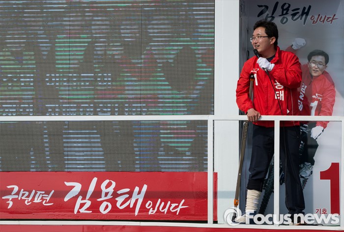 (서울=포커스뉴스) 김용태 새누리당 양천구을 후보가 7일 오후 서울 양천구 신월동 일대에서 선거운동을 하고 있다.