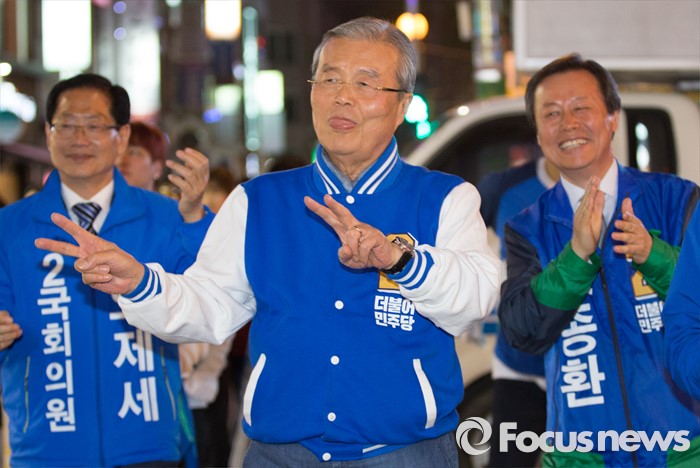 (청주=포커스뉴스) 김종민 더불어민주당 대표가 7일 오후 충북 청주 상당구 성안길에서 율동을 하며 청주시 후보에 대한 지지를 호소하고 있다.