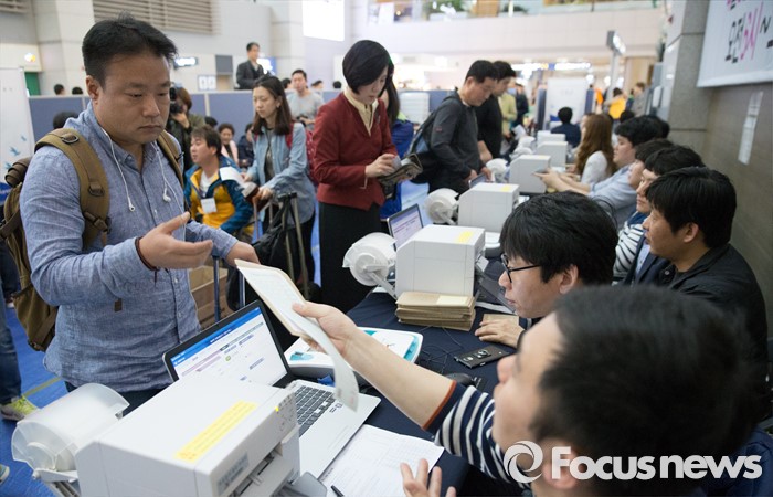 (인천공항=포커스뉴스) 제20대 국회의원 선거 사전투표 시작일인 8일 오전 인천국제공항 출국장에서 한 유권자가 투표용지를 받고 있다.