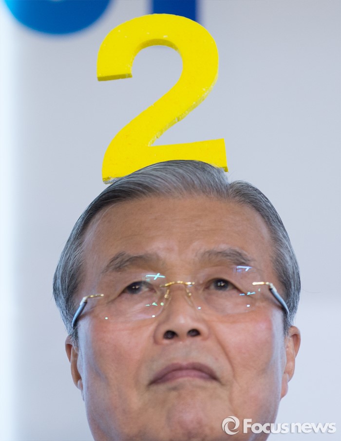 (서울=포커스뉴스) 김종인 더불어민주당 비대위 대표 겸 선대위원장이 8일 오전 서울 은평구 응암로 박주민 은평구갑 후보 사무실에서 중앙선거대책위원회 회의 전 2번 머리띠를 착용하고 지역 어르신들과 기초노령연금인상 공약 퍼포먼스를 하고 있다.
