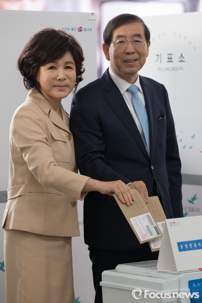 | △ 사전투표하는 박원순 시장 부부 |