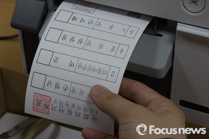 (고양=포커스뉴스) 20대 총선 사전투표가 시작된 8일 오전 고양시 일산동구 식사동 주민센터에 마련된 사전투표소를 찾은 한 시민이 투표용지를 받고 있다.