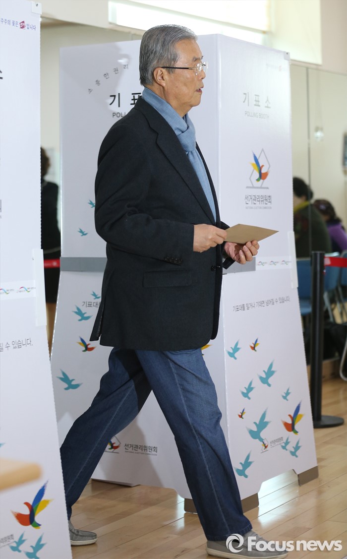 (인천=포커스뉴스) 김종인 더불어민주당 비대위 대표 겸 선대위원장이 8일 오전 인천 연수구 동춘3동주민센터에서 사전투표를 하고 있다.