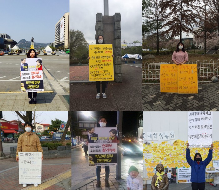 한편 소녀상 지킴이 대학생 농성단은 지난해 12월 28일부터 시작한 농성을 지금까지 이어오고 있다.대학생들이 서울, 세종, 대전, 전주, 충남 등 전국 각지에서 '12·28 한일 위안부 합의'를 규탄하는 1인 시위를 벌였다. <사진제공=소녀상 지킴이 대학생 농성단>