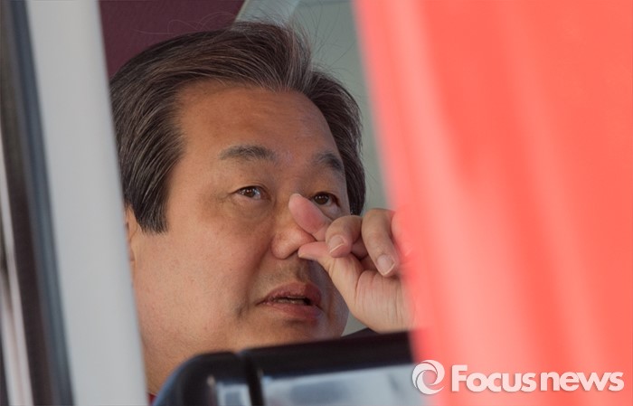 (부천=포커스뉴스) 8일 오전 경기 부천시 역곡역 인근에서 차명진 새누리당 부천소사구 후보 지원유세에서 나선 김무성 대표가 버스 안에서 한 숨 돌리고 있다.