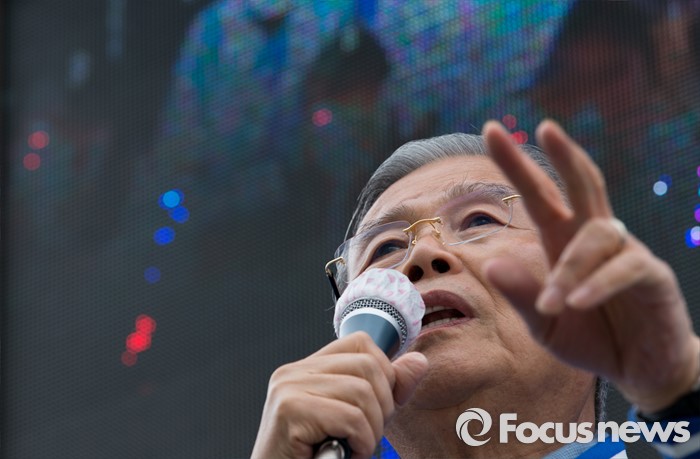(김포=포커스뉴스) 김종인 더불어민주당 비대위 대표 겸 선대위원장이 8일 오후 경기 김포 장기사거리에서 김두관 김포시갑 후보와 정하영 김포시을 후보 합동지원유세를 하고 있다.
