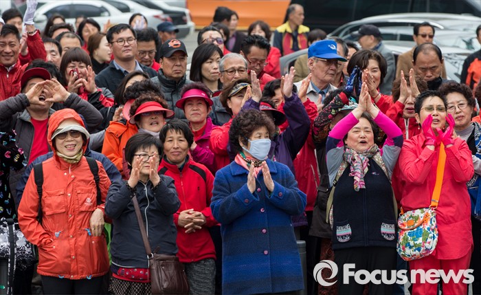 (김포=포커스뉴스) 8일 오후 경기 김포시 사우동 인근에서 열린 김동식 새누리당 김포갑, 홍철호 김포을 후보 합동지원유세에서 지지자들이 박수치고 있다.