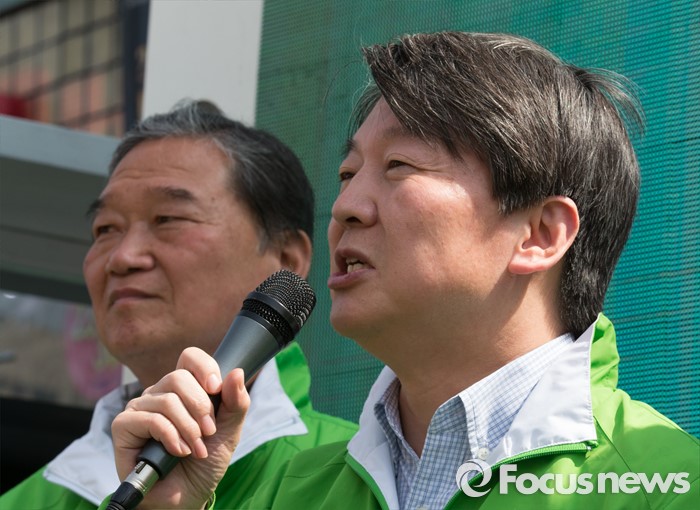 (천안=포커스뉴스) 안철수 국민의당 대표가 8일 오후 충남 천안 신부동 신세계백화점 앞에서 천안에 출마한 후보의 지지를 호소하고 있다.